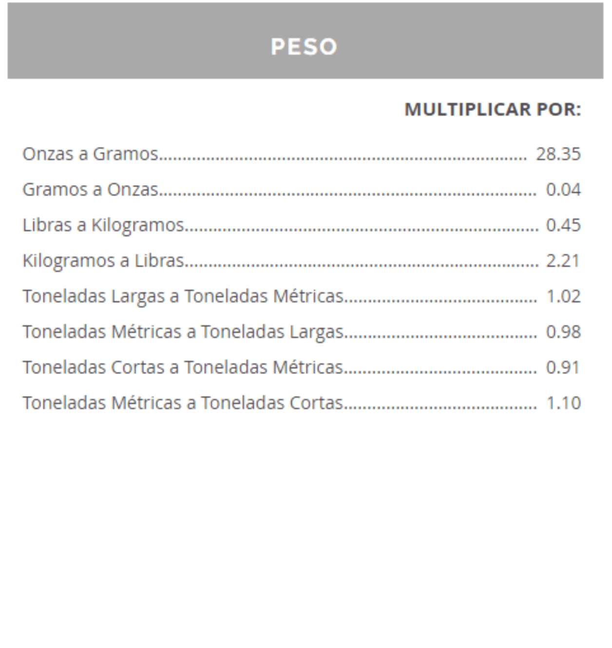 FACTORES DE CONVERSIÓN